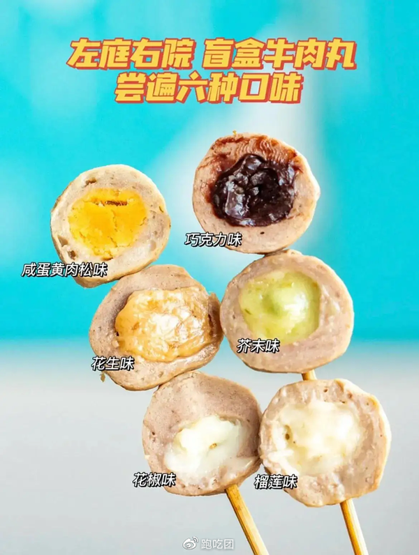 翻看大众点评,顾客对左庭右院的牛肉丸本就评价很高,新鲜、弹性十足、有嚼劲,但是盲盒牛肉丸除了上述特点外,更具魔性——虽然外形一模一样,味道却各不相同,有榴莲味的、花椒味的、花生味的、咸蛋黄肉松味的、芥末味的、巧克力味的等,而且事先也不会告诉顾客有这些口味。因此,当顾客把牛肉丸放进口中的那一刻,既惊喜又忐忑,待到不同味道顺着味蕾传递至大脑,即便是同一桌顾客,面部表情也各不相同。有人眉开眼笑,有人眉头紧锁,但不会有人失望,因为无论哪种口味的牛肉丸,其实味道都挺不错的。
